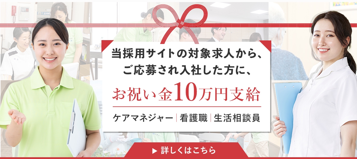 ニチイケアパレス中途採用サイトより応募いただき、入社された方に祝い金10万円を支給します!