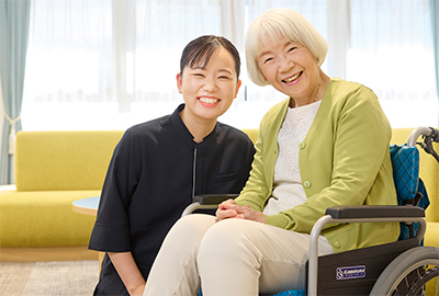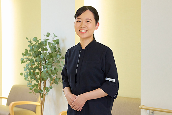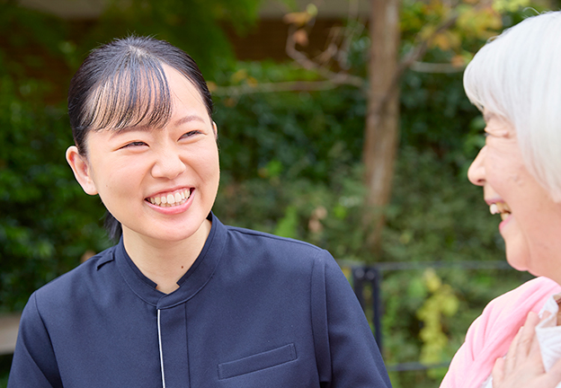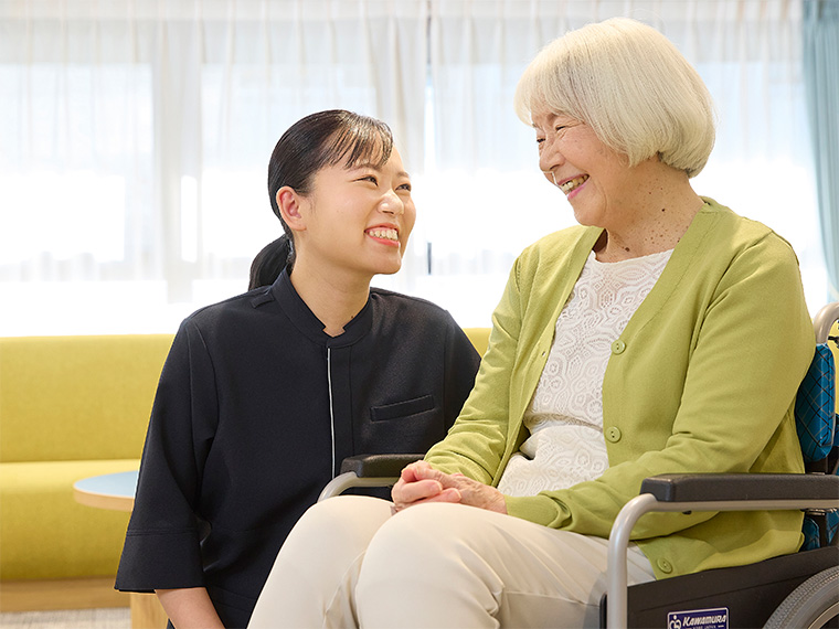 - 昔から街でよくご高齢の方から声をかけられるので、そうしておしゃべりをしているうちに介護職に興味を持ちました。 幅広い介護度の方がいらっしゃるホームで、もっといろいろな方と接してみたいと入社を決めました。